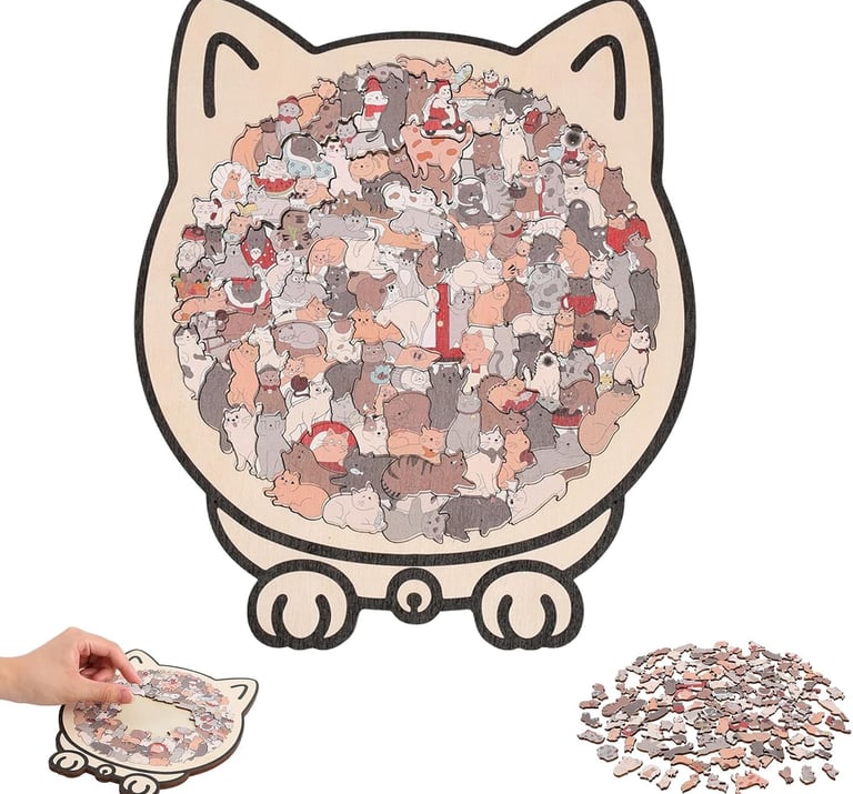 Enjoy a calming, creativity-boosting experience with the 135-Piece Colored Cat Shaped Wooden Jigsaw Puzzle. Designed with a charming cat silhouette frame and intricate cat-inspired pieces, this puzzle offers a refreshing twist on traditional jigsaws. Its soft Morandi color palette gives the finished piece an elegant, artistic look—perfect for decorating desks, shelves, or cozy corners. Crafted from eco-friendly, laser-cut wood, each piece fits smoothly, ensuring a frustration-free and relaxing assembly. Ideal for mindfulness, stress relief, or quality time with loved ones, this puzzle makes a thoughtful and memorable gift for cat lovers, puzzle fans, or anyone who enjoys creative home décor.