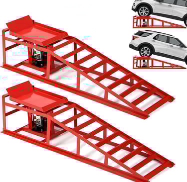 These 5T hydraulic car ramps are built for serious home garage and professional use, offering a powerful 11,060 lbs lifting capacity for cars, SUVs, and light trucks. The integrated hydraulic system allows smooth height adjustment, making oil changes, inspections, and repairs safer and more comfortable. Crafted from heavy-duty alloy steel with a rust-resistant finish, they deliver long-lasting durability and stability under load. Easy to assemble and operate, these ramps provide excellent clearance without the need for bulky lifts. A reliable, space-saving solution for anyone who wants professional-grade vehicle maintenance at home.