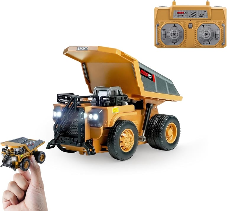 The BRRRRT 1/64 RC Dump Truck brings the excitement of a real construction site right to your hands. Featuring 8 functional channels, a sturdy metal dump bed, and realistic LED lights, this compact truck delivers powerful performance and endless fun. With Type-C built-in charging, it’s always ready for action—no batteries to swap! The 2.4GHz remote control system ensures smooth, interference-free operation, perfect for indoor and outdoor play. Built for durability and realism, it’s an ideal gift for boys and girls aged 3+, as well as collectors who love detailed miniature machinery and realistic RC vehicles.