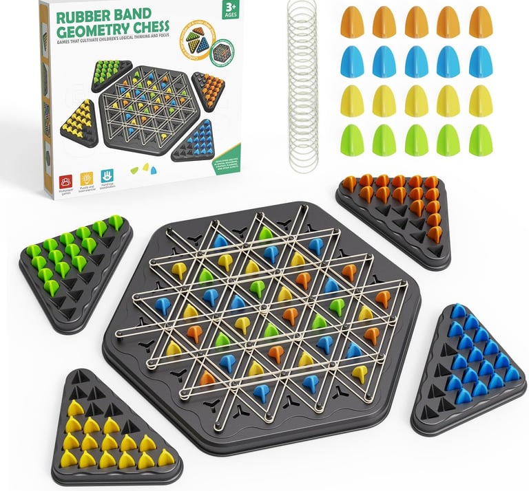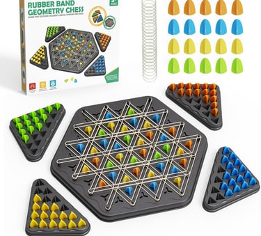 The Chain Triangle Chess Game is a thrilling strategy board game that combines logic, creativity, and speed. Designed for 2 to 4 players, it replaces traditional pieces with colorful rubber bands, creating an exciting geometric challenge that’s easy to learn but hard to master. Ideal for both kids and adults, this game enhances concentration, problem-solving, and strategic thinking while providing endless fun during family gatherings, school breaks, or parties. Its compact design makes it perfect for travel or home play. A great gift for Christmas, birthdays, or any occasion that brings families and friends together for smart entertainment.