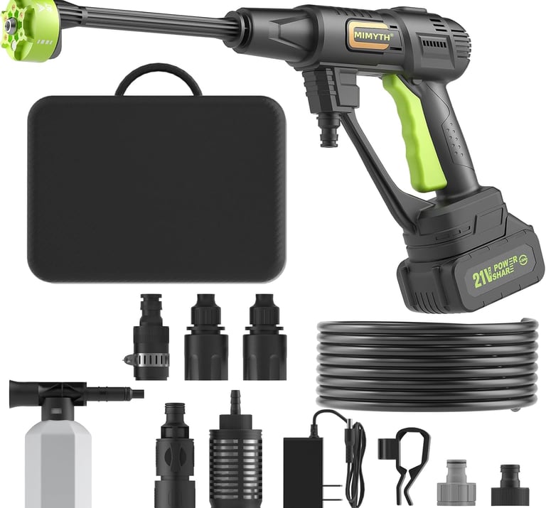 Take cleaning power anywhere with the Cordless Pressure Washer 990PSI, your ultimate portable cleaning companion for home, car, garden, and outdoor use. Featuring a high-performance 21V battery, 6-in-1 adjustable nozzle, and a 23FT high-elastic hose, this washer delivers strong, efficient water pressure without the need for cords or bulky setups. Easily tackle dirt, grime, and debris from vehicles, patios, windows, or outdoor furniture. Lightweight yet powerful, it’s designed for convenience, mobility, and durability. Whether you’re washing your car or watering plants, the Cordless Power Washer provides freedom, flexibility, and fast cleaning anywhere, anytime — with maximum efficiency!