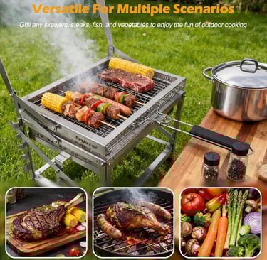 The Ergocar multi-function charcoal grill is built for outdoor cooking enthusiasts who value control, portability, and durability. Featuring a smart 180° rotatable grill design, it allows even heat distribution without moving food, ensuring consistent results every time. The four-tier adjustable charcoal tray makes temperature management simple, helping you smoke, grill, or barbecue without burning meals. Crafted from corrosion-resistant stainless steel, it resists rust, heat, and outdoor conditions while remaining lightweight and easy to transport. Ideal for camping, picnics, patios, beaches, and backyard gatherings, this grill combines practical engineering with a clean, modern design for reliable outdoor performance.