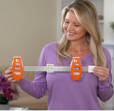 Simplify every wall project with the Hang Hero All-in-One Picture Hanging System, a smart tool designed to make hanging frames, artwork, mirrors, and décor perfectly straight — all by yourself. This handy device uses magnetic cylinders to hold nails securely and insert both nails simultaneously at the correct depth and angle, eliminating guesswork and crooked results. Built-in leveling ensures your items are always straight, while the adjustable handle measures frame width for precise placement. Whether you’re decorating your home or office, this system saves time, avoids mistakes, and delivers professional-looking results with ease. Includes the Hang Hero tool and 50 #17 brad nails.