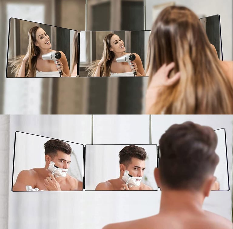 The HIEEY 360° trifold mirror is a practical beauty tool designed to give you a full, clear view from every angle. Its three adjustable panels help you style your hair, trim your beard, or apply makeup with precision. The built-in 5× magnification mirror highlights fine details, making grooming easier and more accurate. Its folding, lightweight design fits perfectly on desks, vanities, or travel bags, offering flexibility wherever you go. Whether you're shaping eyebrows, checking hairlines, or perfecting your look, this mirror delivers clarity, stability, and convenience. Ideal for home use, professional styling, or daily beauty routines.