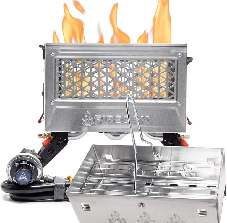 The Ignik FireCan Deluxe is a compact, adventure-ready propane fire pit and grill designed for outdoor lovers who want warmth, ambiance, and cooking power anywhere. Built from durable stainless steel in a rugged ammo-can style, it sets up in seconds and works perfectly in places where wood fires are restricted. The adjustable flame delivers a realistic campfire feel, while the removable grill insert allows easy outdoor cooking. Lightweight, portable, and thoughtfully engineered, it’s ideal for camping, tailgating, beach trips, and backyard evenings. A smart solution for safe fires, responsible outdoor fun, and effortless portability.