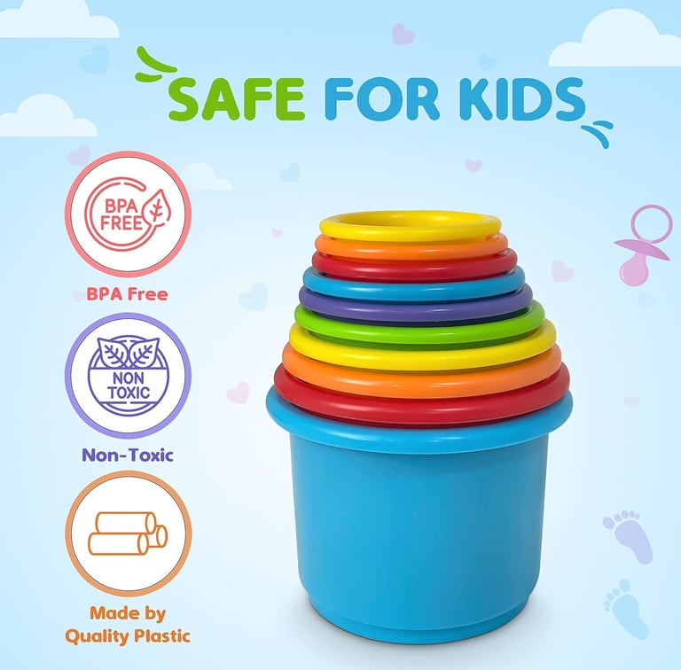 The KIDSTHRILL Rainbow Stacking Cups turn playtime into a colorful learning adventure! Perfect for toddlers aged 1–3, these 10 cups stack, nest, and float safely in the bath thanks to built-in drain holes. Designed to boost hand-eye coordination, fine motor skills, and color recognition, they also introduce early math concepts through sorting and counting. Made from durable, non-toxic materials with no detachable parts, these cups are lightweight, easy to clean, and toddler-safe. Bright rainbow colors instantly grab attention, keeping kids engaged for hours while parents enjoy peace of mind with a versatile, educational toy.