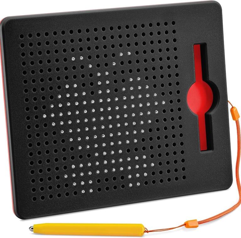 The Magnetic Drawing Board for Toddlers & Kids is the perfect screen-free creativity toy for little artists. It features smooth magnetic beads, a child-friendly stylus, and a sturdy board that lets kids doodle, trace, and design endlessly. Ideal for developing fine motor skills, hand–eye coordination, and early creativity, this mess-free toy keeps children entertained at home, in restaurants, or during long car rides. Its compact and durable build makes it a must-have travel activity for boys and girls. Safe, engaging, and educational, this magnetic board encourages imagination while providing parents with a quiet, calming activity for toddlers.