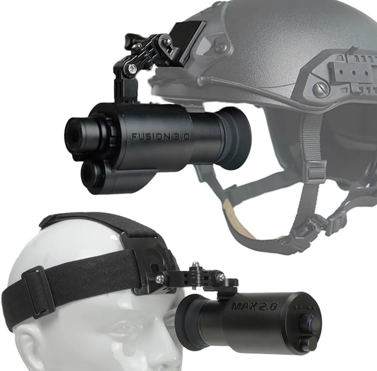 The MAX 2.0 and Fusion 3.0 goggles bring affordable night vision and thermal imaging to enthusiasts and tactical hobbyists. MAX 2.0 delivers crisp, near-zero delay digital night vision up to 100 meters, while Fusion 3.0 adds thermal capability for a military-style edge. Both goggles are lightweight, head- and helmet-mountable, and feature wide field-of-view lenses, adjustable IR focus, and 60FPS+ refresh rates for real-time clarity. USB rechargeable and built for comfort with grippy headstraps, these goggles pair with NVG mounts, red dot sights, and IR illuminators. Ideal for airsoft, hunting, or tactical training without breaking the bank.