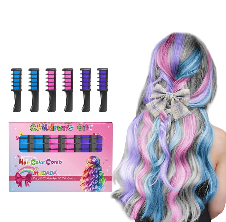 Add a burst of color and creativity to your child’s hair with the New Hair Chalk Comb — the perfect temporary hair dye for girls with light-colored hair! Designed for ages 4 to 10, this easy-to-use comb lets kids safely experiment with bold, vibrant shades for birthdays, parties, cosplay, or Children’s Day fun. The washable formula ensures easy cleanup, while the non-toxic ingredients keep hair soft and safe. Each comb glides smoothly through strands for instant color transformation without mess or damage. Perfect for little trendsetters who love expressing themselves through fun and playful styles!