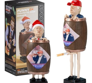 Add humor to your smoke breaks with the Trump Cigarette Dispenser, a hilarious and creative cigarette holder that combines functionality with a bold statement. Designed to automatically dispense cigarettes with a single press, this gadget delivers both laughs and convenience. Its funny Trump design makes it a perfect gag gift, party accessory, or collectible for anyone who enjoys quirky items. Compact and easy to carry, it’s guaranteed to draw attention wherever you go. Whether for friends, coworkers, or personal fun, this dispenser turns every smoke into a moment of entertainment.
