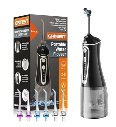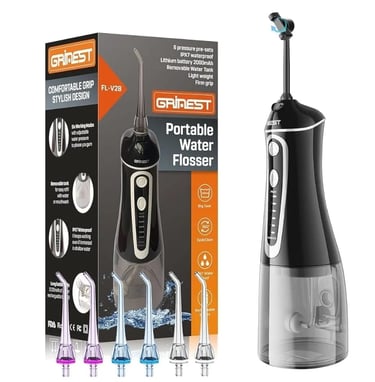 Water Flosser – Grinest 7-Mode Rechargeable Cordless Oral Irrigator, IPX7 Waterproof, Portable Teeth Cleaner for Home & Travel (Black)