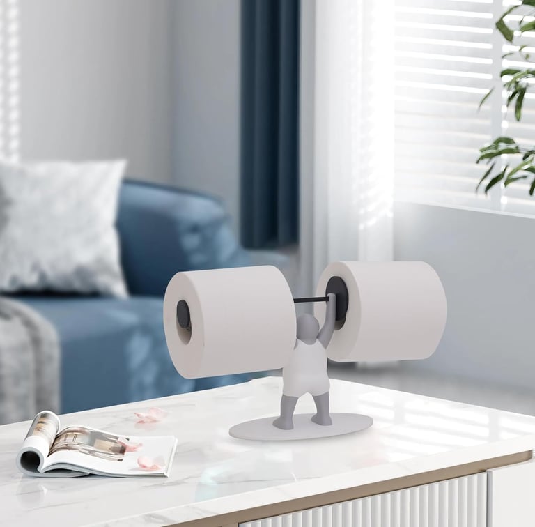 Add a fun and practical touch to your bathroom with this Weightlifter Barbell Toilet Paper Holder! Designed in the shape of a miniature weightlifter lifting a barbell, this quirky accessory brings personality and humor to any restroom while holding your toilet paper securely. Made with a modern, painted finish, it fits most standard rolls and enhances bathroom décor with a unique athletic theme. Its stable base ensures the roll stays in place without falling, and the playful design makes it a great conversation starter for guests. Perfect as a gift for fitness fans, home decorators, or anyone who loves functional yet stylish accessories.